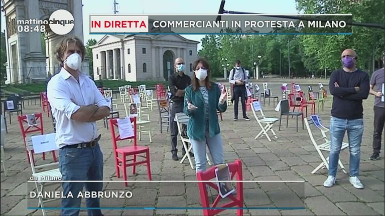 In tutta italia le proteste di chi vuole riaprire la propria attività. In rivolta ristoratori e gestori di locali di Milano con le sedie dei locali con messaggi di protesta