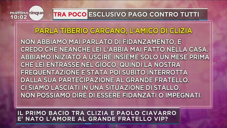 Le dichiarazioni della persona che Clizia stava frequentando fuori dalla Casa, prima di entrare:"Non possiamo dire che siamo fidanzati, non ho nulla da ricriminarle".