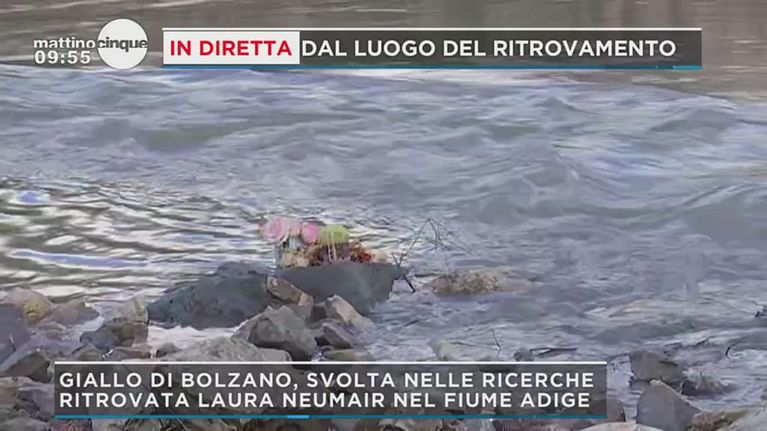 Il luogo dove è stato ritrovato il corpo di Laura, la figlia ha portato un mazzo di fiori sul posto, di Peter Neumair ancora non si è trovato il corpo.