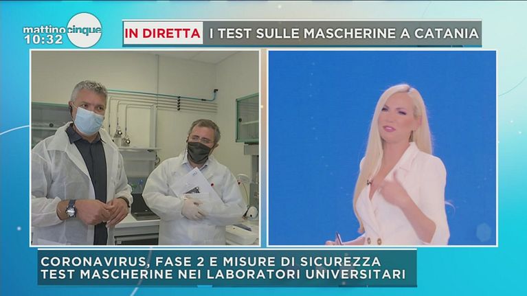 Il prof. Ballio mostra il risultato dei test eseguiti su alcune mascherine nel laboratorio scientifico dell'univeristà di Catania