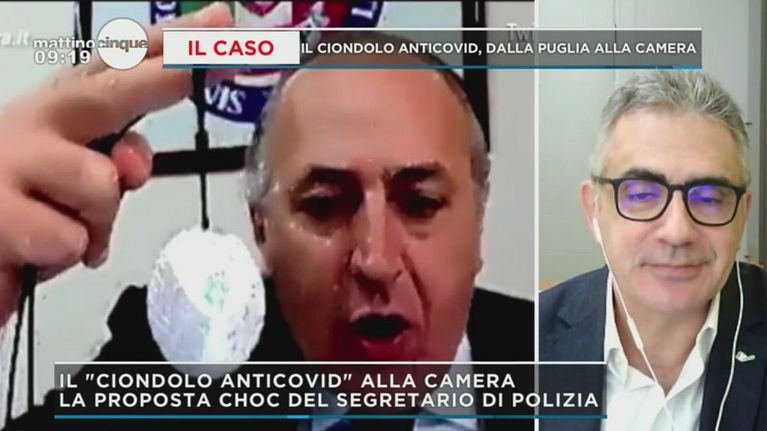 Giuseppe Tiani, Presidente di InnovaPuglia, e la sua bizzarra proposta per combattere il virus: un purificatore d'aria da indossare.