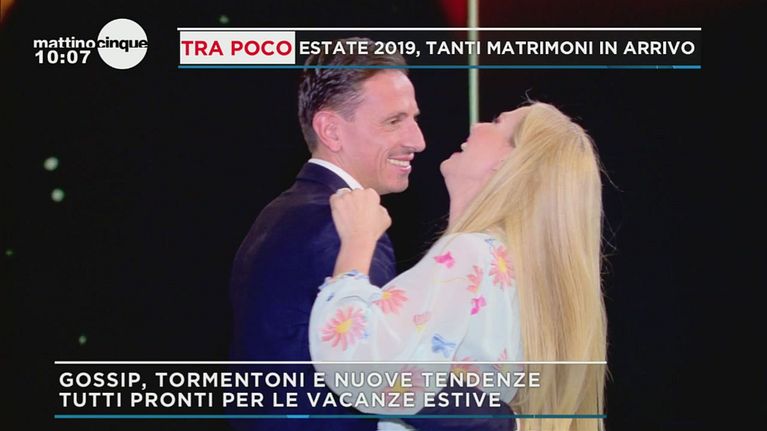 La suadente voce di Apicella accompagna un dolce ballo tra Federica Panicucci e il compagno Marco Bacini.