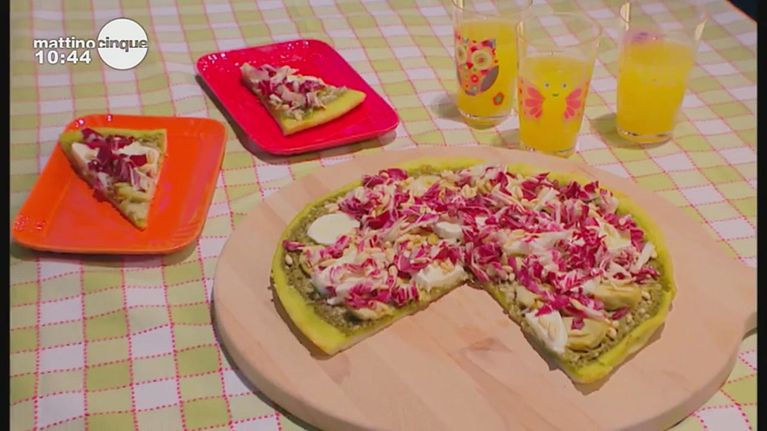 Una pizza con carciofi e radicchio.