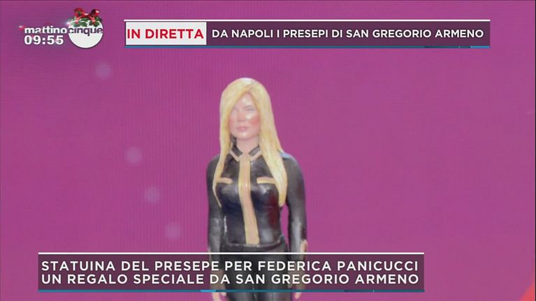 Una sorpresa per Federica Panicucci, ecco arrivare in studio la statuetta del presepe che la rappresenta, l'autore della quale è Marco Ferrigno.