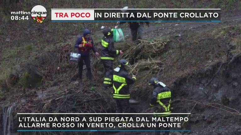 L'Italia flagellata dal maltempo da Nord a Sud: allarme rosso in Veneto, dove è crollato un ponte.