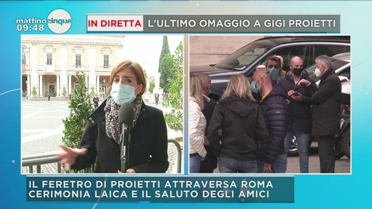 Il feretro di Proietti attraversa Roma: cerimonia laica e il saluto degli amici.