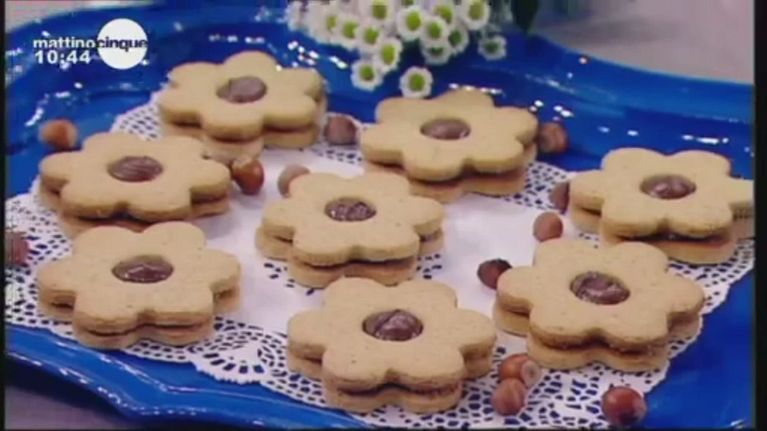Deliziosi biscotti a forma di fiore farciti con una golosa crema alla nocciola.