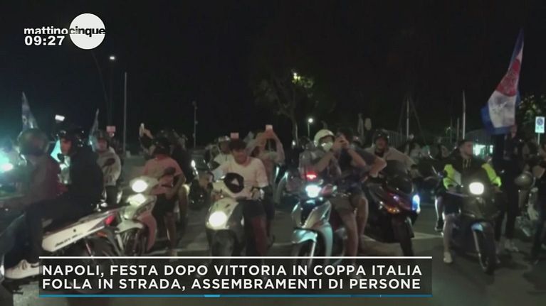 Dopo la vittoria in Coppa Italia, folla a Napoli, assembramento dei tifosi, "roba da sciagurati" dicono i virologi.
