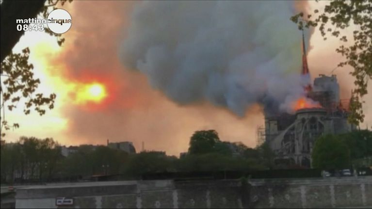 A fuoco la cattedrale di Notre Dame a Parigi, crollano la guglia e il tetto. Le immagini choc del crollo della guglia