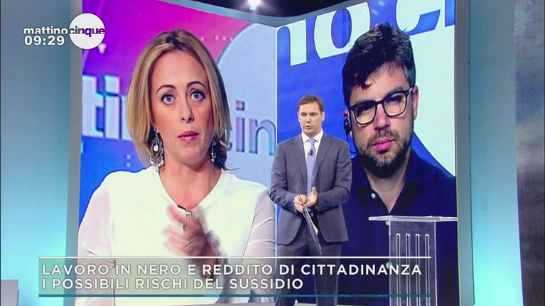 Scontro acceso tra la presidente di Fratelli d'Italia e il giornalista Stefano Feltri sulle possibili criticità del sussidio.