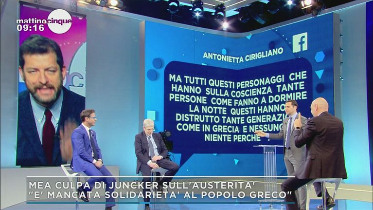 Il mea culpa di Juncker: "Eccessiva austerity e poco solidali con i Greci". Dibattito in studio sull'argomento