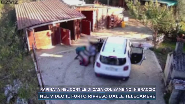 Rapinata nel cortile di casa col bambino in braccio