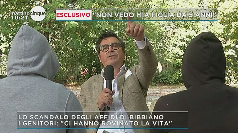 Mentre il giornalista racconta storie di famiglie e genitori a cui i servizi sociali hanno sottratto i figli, una dipendente del comune, affacciandosi dalla finestra, grida:"Vergognatevi!".