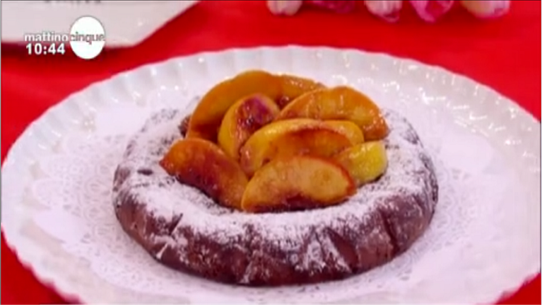 Torta di ricotta al cioccolato e pesche caramellate