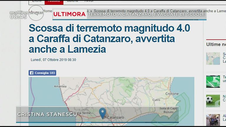 Ultimora: scossa di terremoto a Catanzaro
