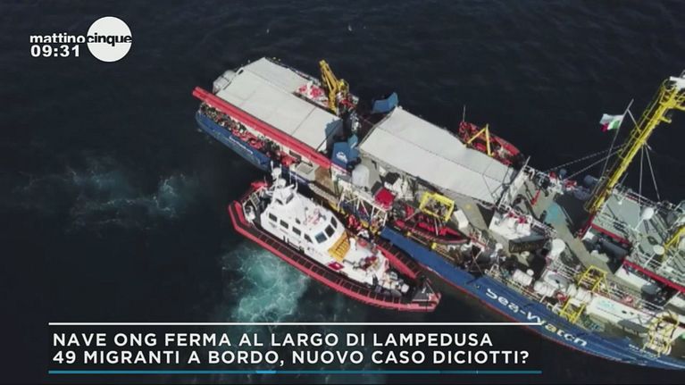 Mare Jonio, un'imbarcazione ONG, è ferma a largo di Lampedusa in attesa di autorizzazione a sbarcare 49 migranti.