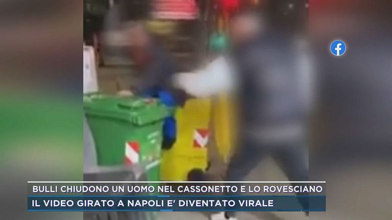 Bulli chiudono un uomo nel cassonetto e lo rovesciano