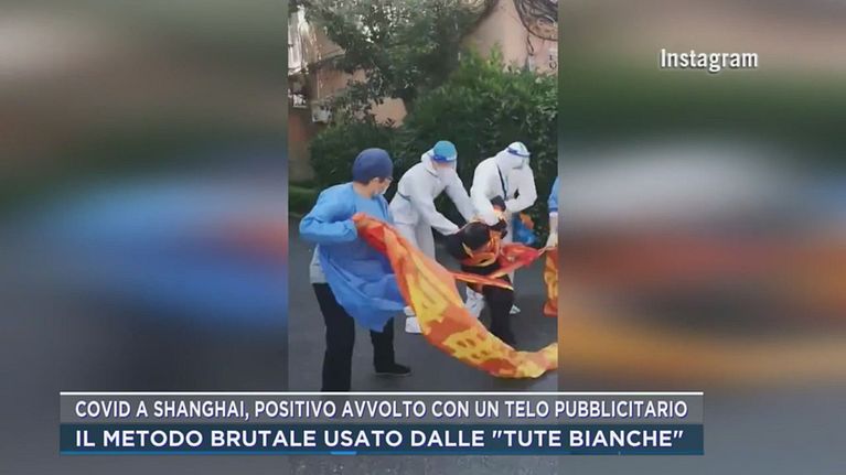 Covid a Shanghai, positivo avvolto con un telo pubblicitario