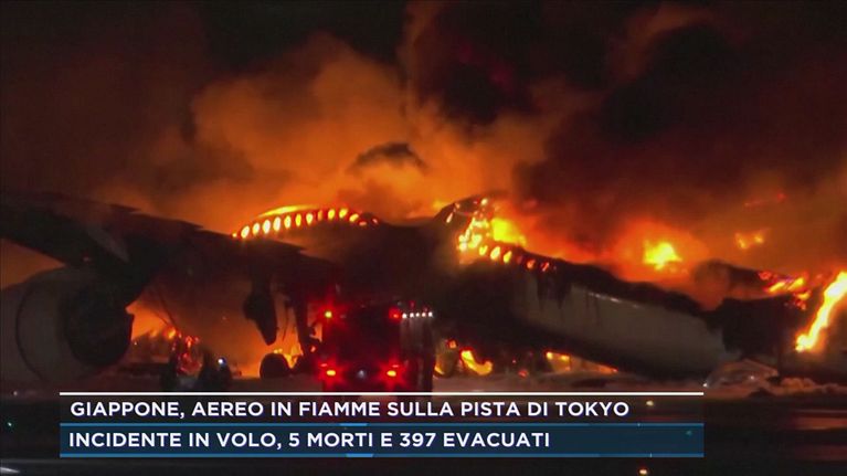 Giappone, aereo in fiamme sulla pista di Tokyo