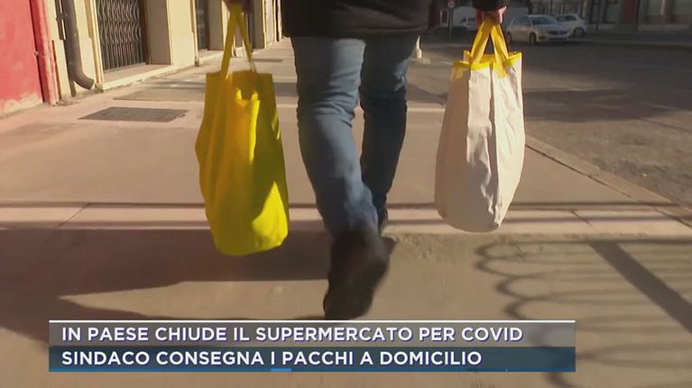 Sindaco consegna i pacchi a domicilio.