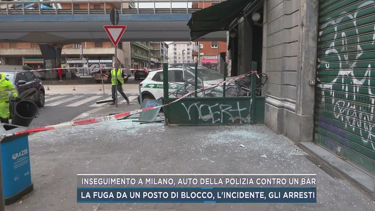 Inseguimento a Milano, auto della polizia contro un bar
