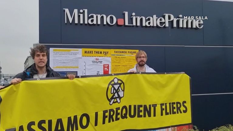 La protesta a Linate, contro i jet privati