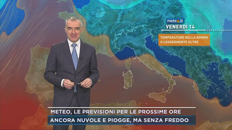 Ancora nuvole e piogge, ma senza freddo