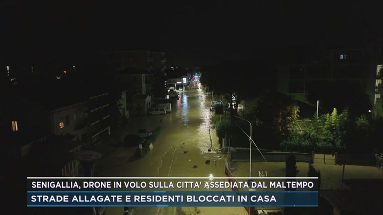 Senigallia, drone in volo sulla città assediata dal maltempo