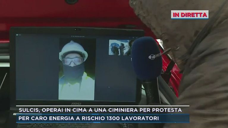 Sulcis, operai in cima a una ciminiera per protesta