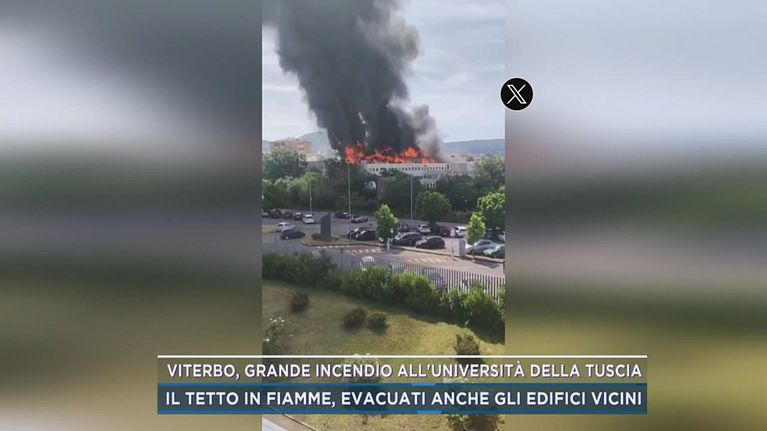 Viterbo, grande incendio all'Università della Tuscia