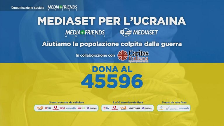 In Ucraina milioni di persone sono in pericolo: Mediaset e Mediafriends lanciano una raccolta fondi in collaborazione con Caritas Italiana per portare aiuti umanitari nelle aree più crtiche del conflitto. C'è bisogno del tuo contributo. Dona ora su www.mediafriends.it.