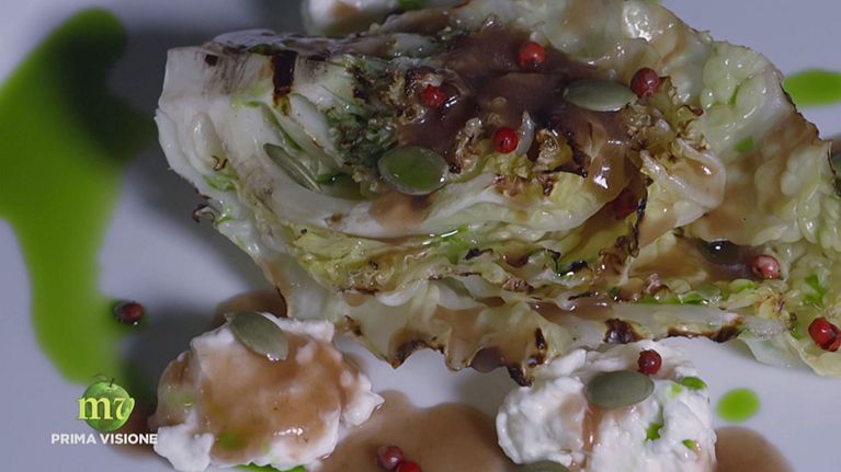 Verza, stracchino e fondo di cipolla rossa