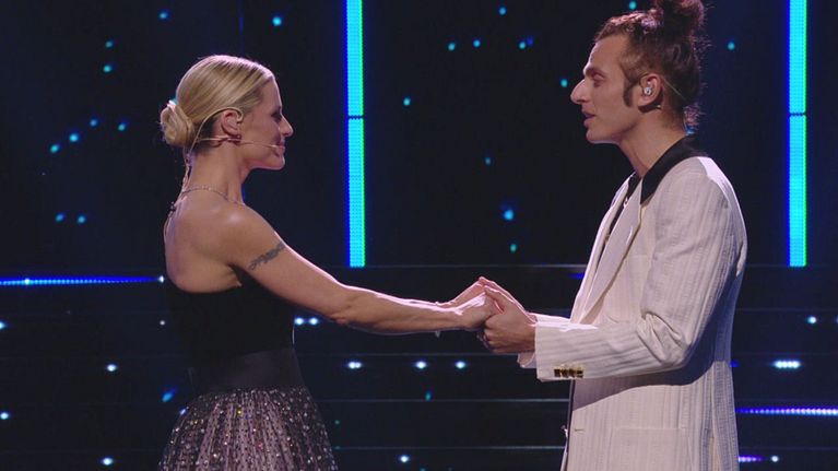 Ilary e Michelle ballano insieme un tango sulle note di "I want to break free" cantata da Giacomo Voli, il vintore di All Together Now.