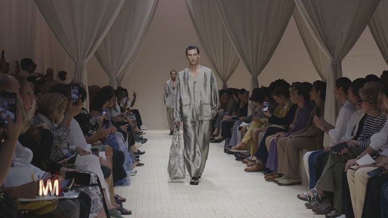 Materiali tecnici e dinamici: è un richiamo alla natura. È un richiamo all'Africa per un ritorno alle origini. Sfila la collezione Emporio Armani.