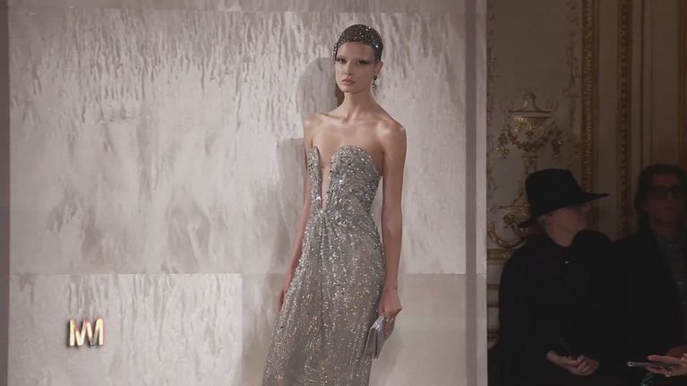 Lo straordinario racconto di una donna autentica che indossa una bellezza scintillante. Per i suoi vent'anni di alta moda qui a Parigi sfila la collezione Lumière di Giorgio Armani Privé.
