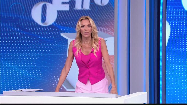 Simona Branchetti conduce in diretta il programma di informazione di Canale 5.
