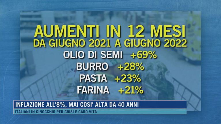 Inflazione all'8%, mai così alta da 40 anni