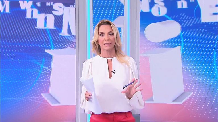 Simona Branchetti conduce in diretta il programma di informazione di Canale 5.