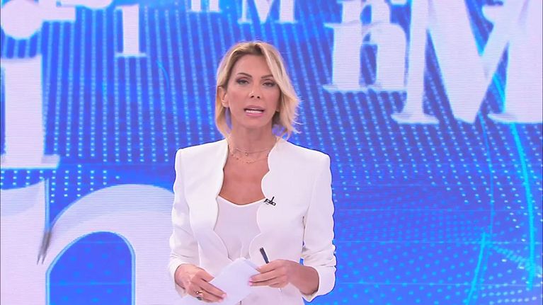 Simona Branchetti conduce in diretta il programma di informazione di Canale 5.