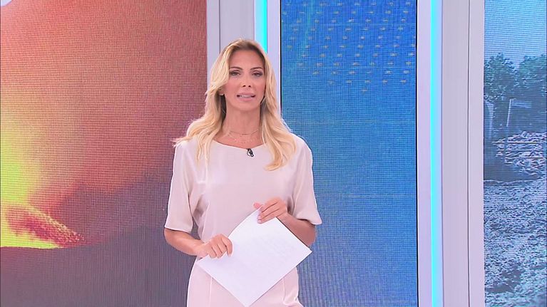 Simona Branchetti conduce in diretta il programma di informazione di Canale 5.