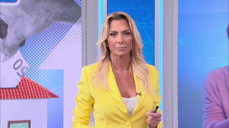 Simona Branchetti conduce in diretta il programma di informazione di Canale 5.