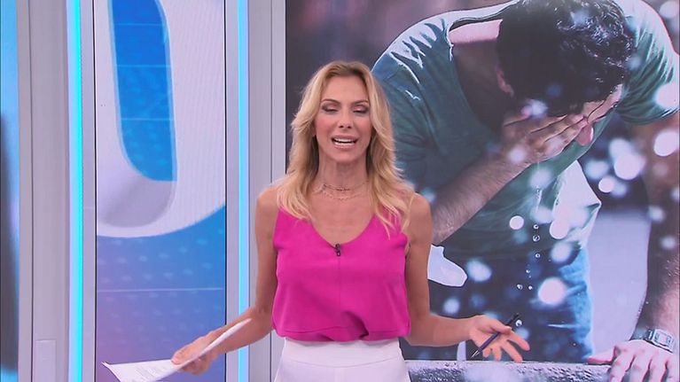 Simona Branchetti conduce in diretta il programma di informazione di Canale 5.