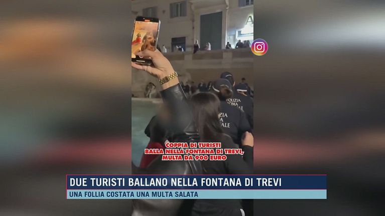 Due turisti ballano nella fontana di Trevi
