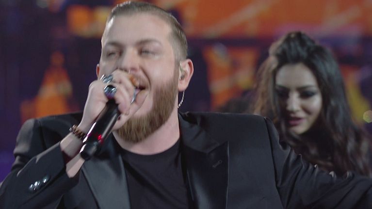 La sua voce potente e graffiante canta una canzone di un grande mostro sacro, Ray Charles: "What'd I say".