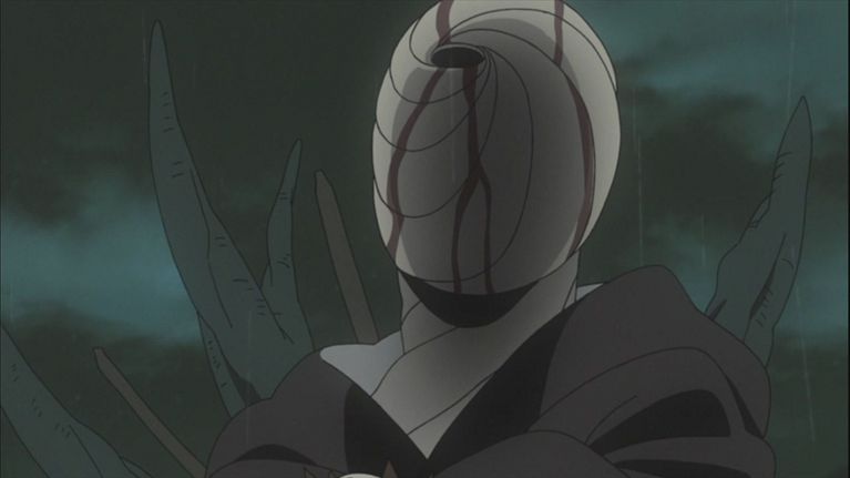 S8 Ep25 - Obito e' ancora sotto le cure di Madara e stringe amicizia con due zetsu bianchi. Dopo essersi quasi del tutto rimesso, viene informato da uno degli zetsu che Rin e Kakashi sono in pericolo, lo zetsu col volto a spirale lo avvolge con il suo corpo per proteggerlo e dargli la sua forza. Obito ringrazia Madara e gli dice che non tornera' piu', ma il vecchio gli risponde che si sbaglia. Obito corre al campo di battaglia e assiste alla morte di Rin per mano di Kakashi. Preso dalla furia omicida uccide tutti tranne Kakashi.