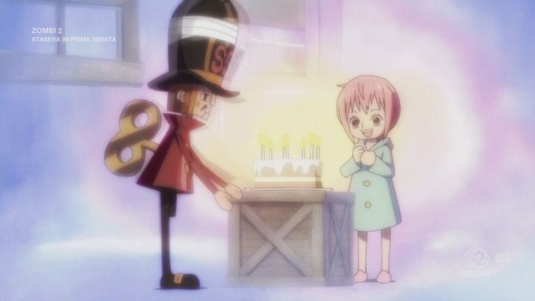 La situazione tragica all'interno della "Gabbia per uccelli" rievoca negli abitanti la notte di terrore durante la quale Do Flamingo realizzò il suo colpo di stato dieci anni prima. Il re di Dressrosa afferma che pagherà la testa dei criminali presenti sull'isola con cento milioni per ogni stella assegnata loro: una a Rebecca, Robin, Kin'emon, Viola e Franky; due a Kyros e Zoro; tre a Sabo, Rufy, Law e re Riku; cinque a Usop.