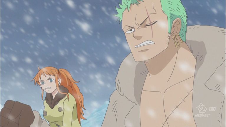 Caesar attira a sé i bambini promettendogli delle caramelle e quando Nami e Usop lo attaccano, lo scienziato spiega di poter manipolare tutti i gas, aria compresa, e di avere sconfitto Rufy e gli altri rimuovendo l'ossigeno, impedendogli di respirare. Dopo avere messo al tappeto anche loro due con lo stesso metodo, spinge i bambini a ucciderli per ottenere le caramelle, ma Barbabruna, appena ripresosi, li ferma e sfoga la sua ira su Caesar. Lo scienziato, dopo avere fatto ritirare i bambini verso la nave pallone con cui è giunto, con i suoi poteri sconfigge facilmente sia l'ex pirata che gli altri due. Intanto, vicino al lago centrale, Smiley finisce di attraversare il lago e comincia a fondersi con gli altri pezzi lanciati.
