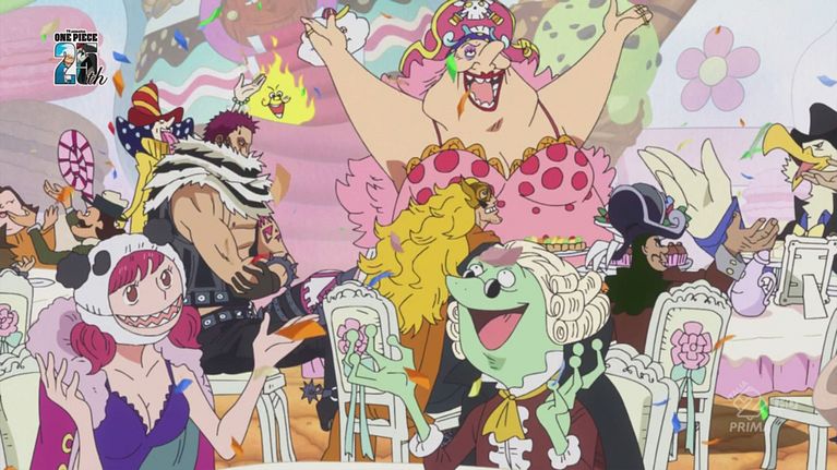 Gli uomini di Bege svolgono gli ultimi preparativi al loro piano di assassinio, sbarazzandosi di testimoni scomodi, quindi fanno rapporto al loro capitano. Bege, con all'interno del suo corpo Rufy e gli altri, entra al Tea Party ormai incominciato preparandosi ad agire. Intanto, a mezzogiorno in punto, Sanji e Pudding arrivano alla festa per iniziare la cerimonia di nozze.