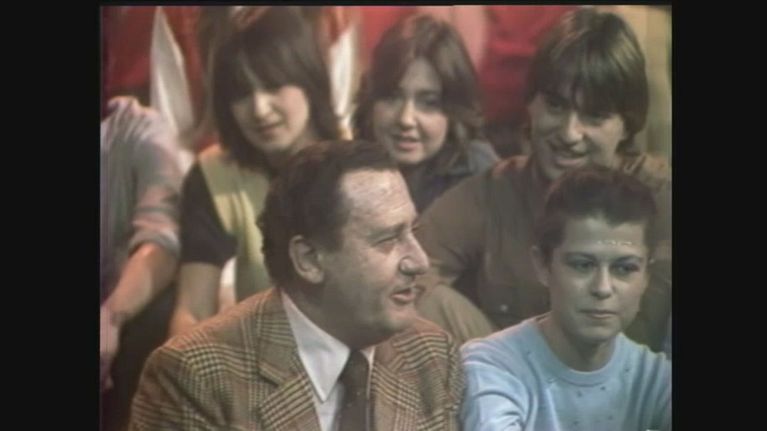 L'attore Alberto Sordi arriva a sorpresa in studio