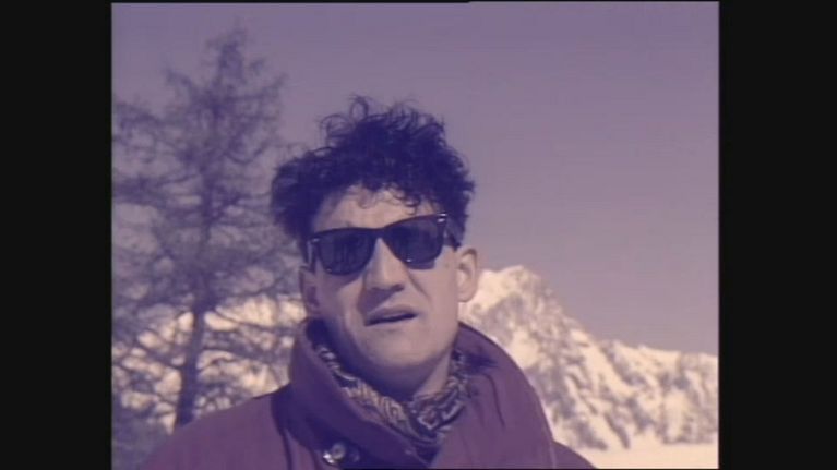 Il comico salta sulla neve esibendosi nel suo nuovo pezzo